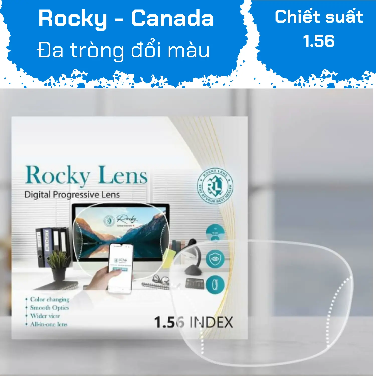 The product stands out with its ability to self-adjust focus, allowing the eyes to easily adapt to any distance. Clear, natural, and distortion-free vision are immediate benefits provided by the Rocky progressive lens. Additionally, the blue light filtering feature plays an important role in reducing harmful blue light from electronic screens, helping the eyes relax.