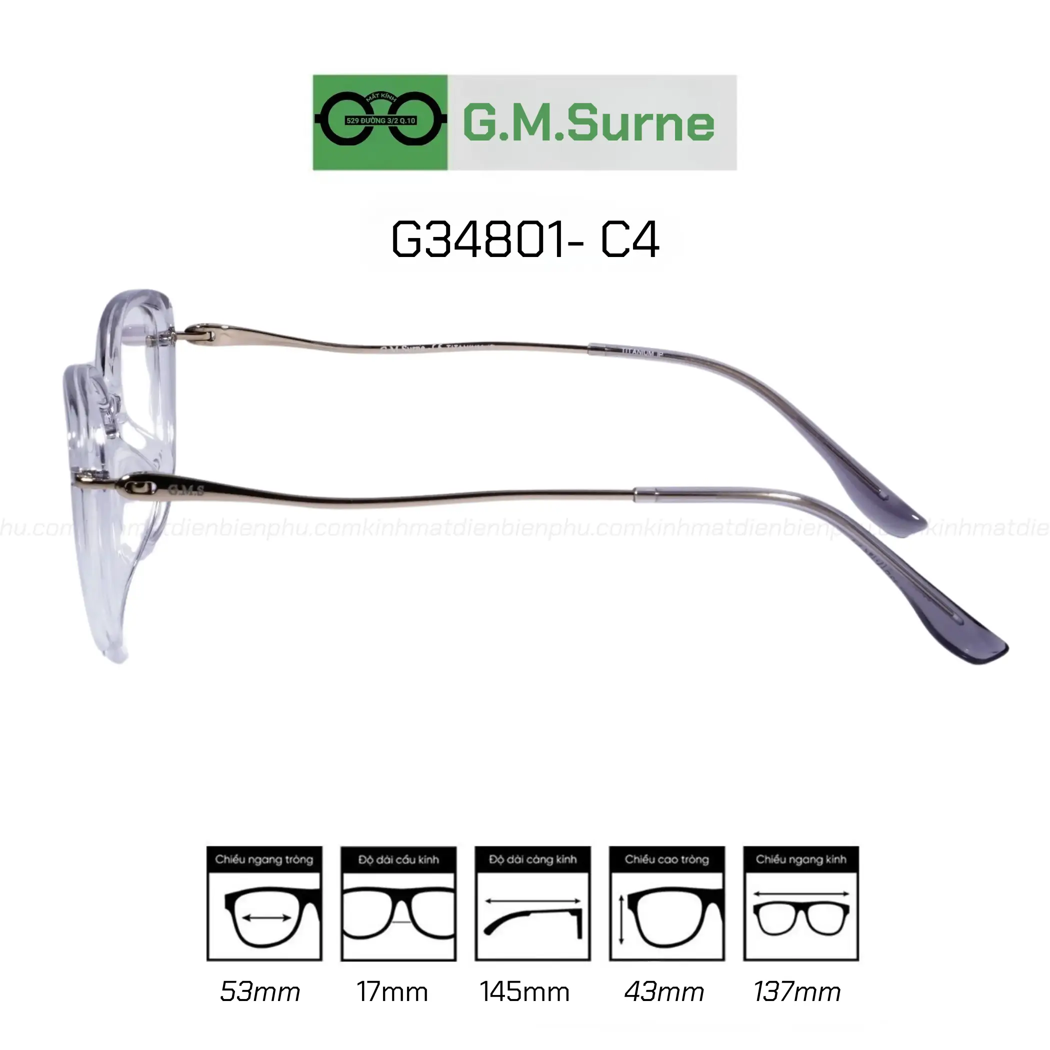 The G.M.Surne G34801 - C4 frame is a perfect blend of modern design and versatility, shaping the fashion style of its users. With a reasonable price of only 650,000 VND, it is an ideal choice for those who appreciate elegance and luxury. The unisex oval frame is suitable for all ages and styles, symbolizing confidence and high aesthetic taste.