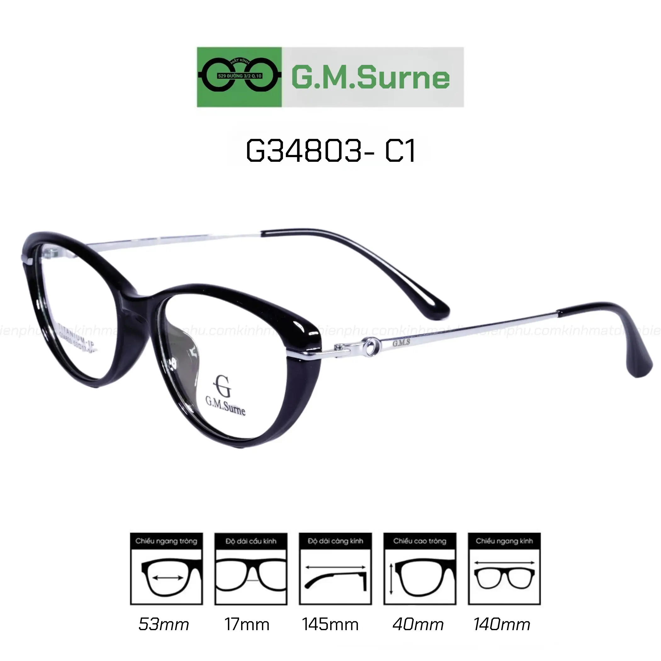 The cat-eye shape of the G.M.Surne G34803 - C1 fits many face shapes, especially round and oval faces, helping to accentuate the features.