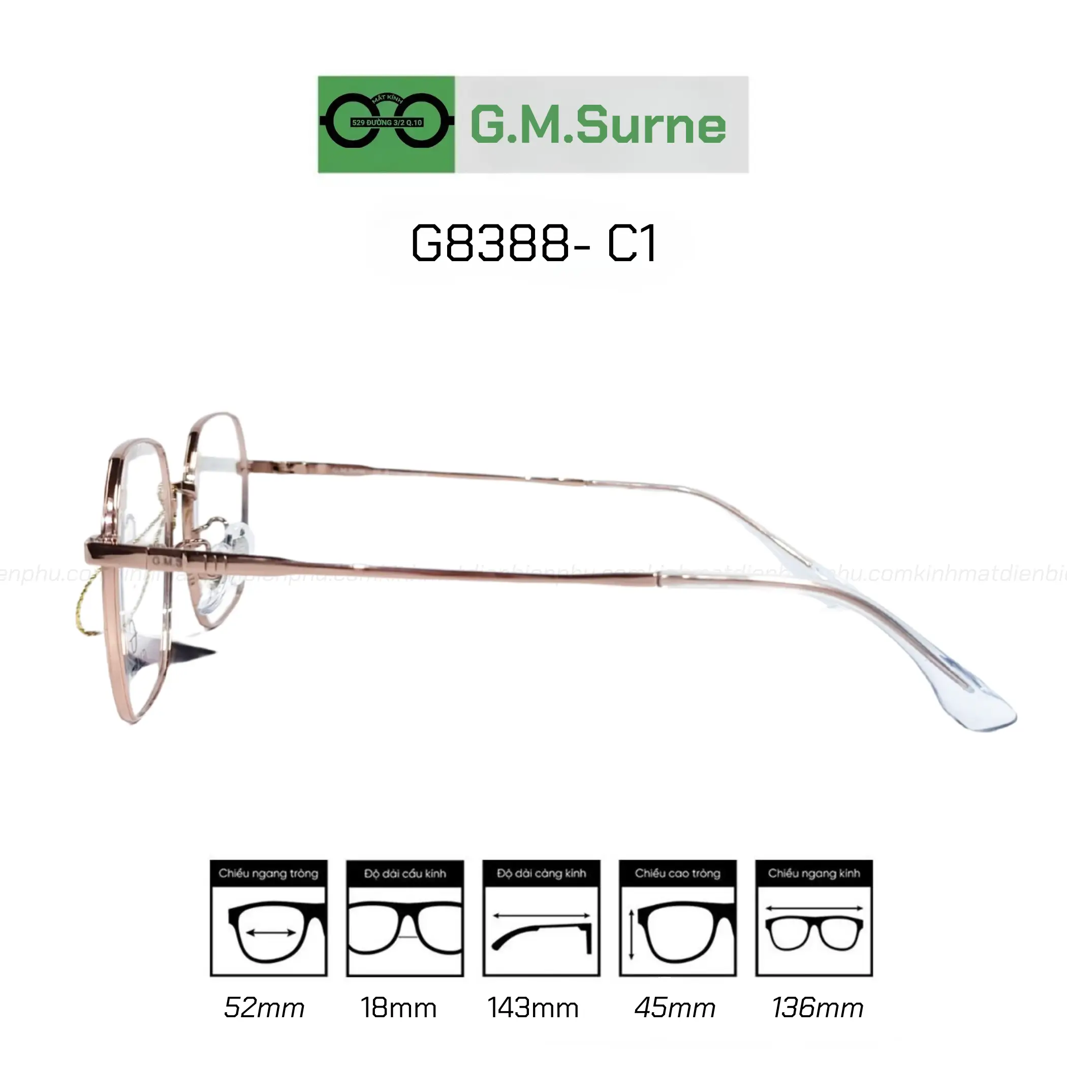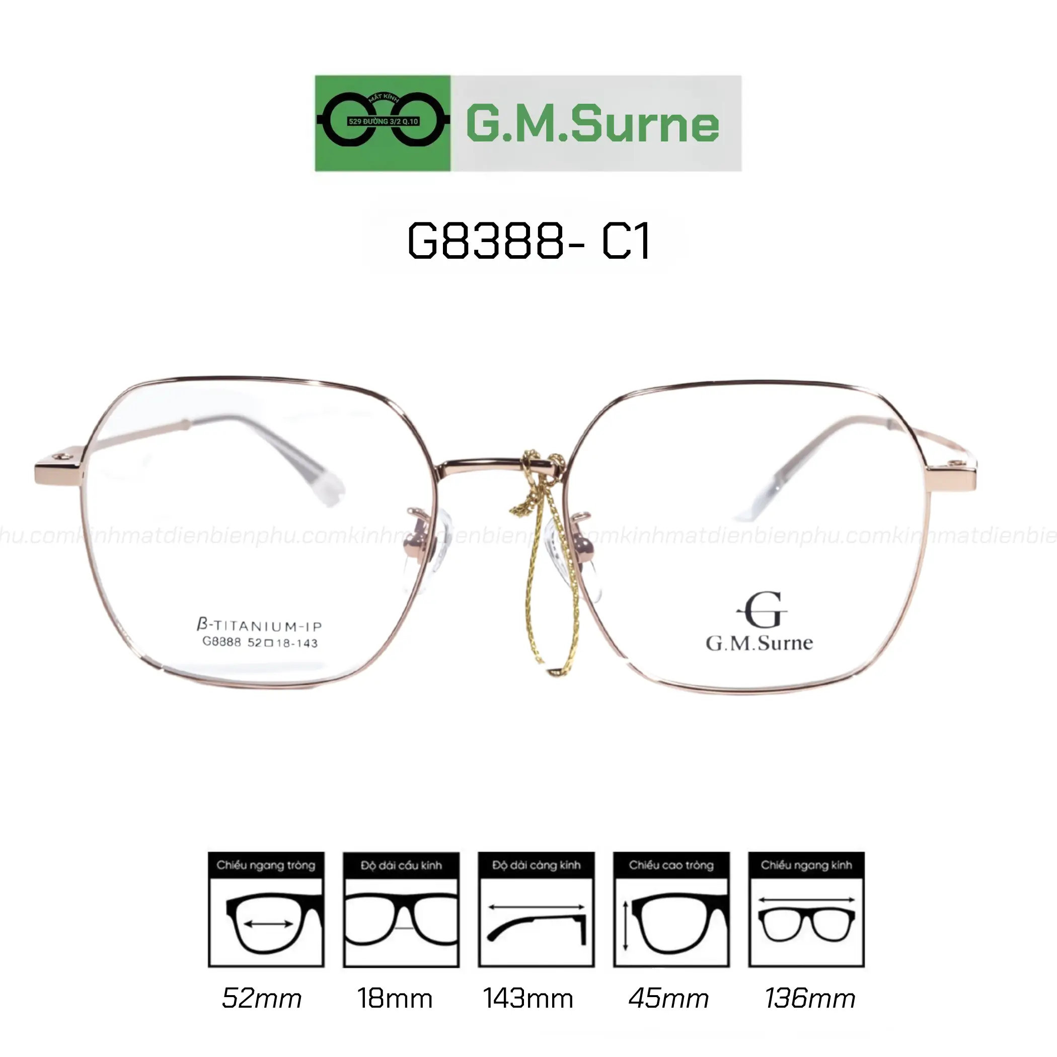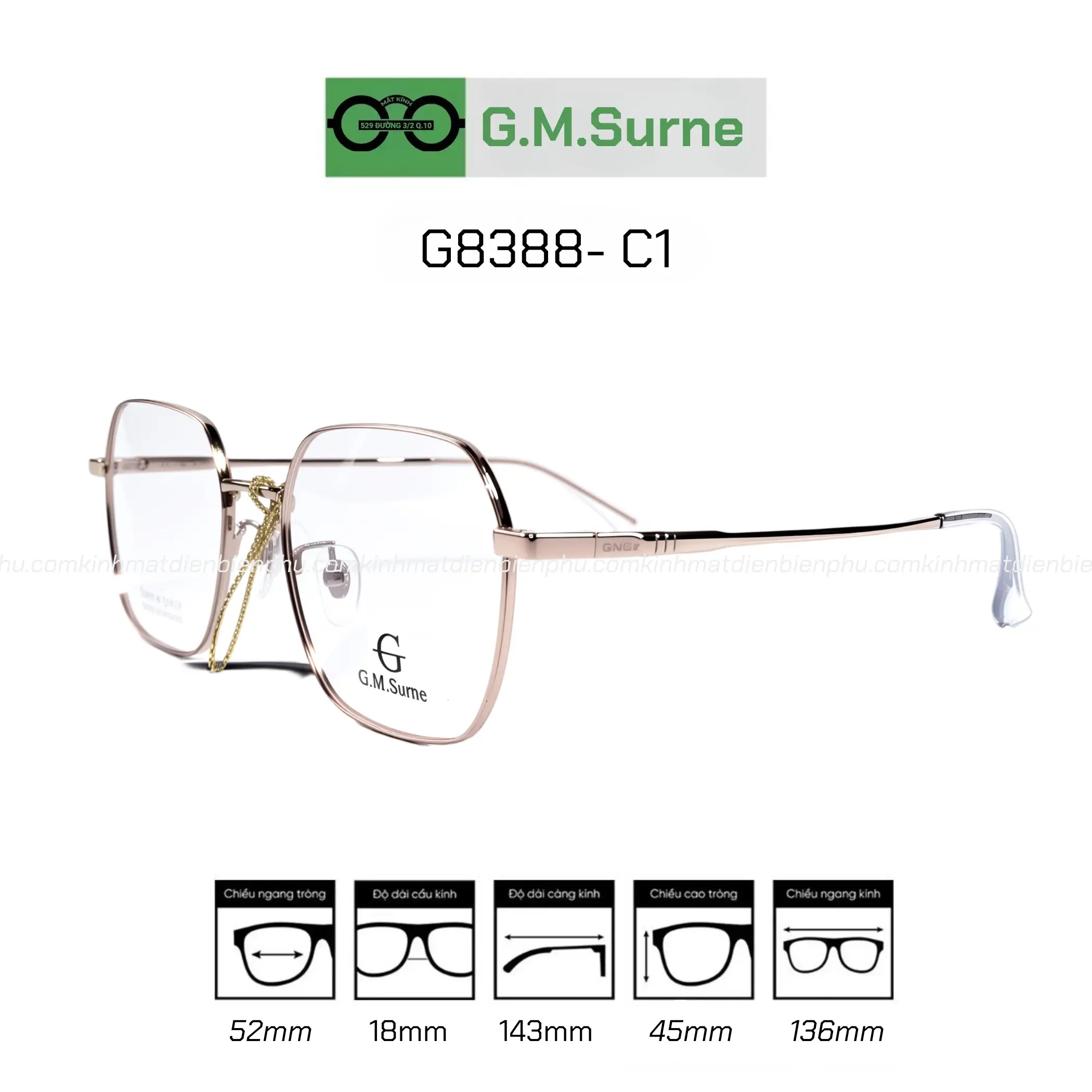 The G.M.Surne G8388-C1 frame from the GMSurne brand is a symbol of elegant style and modernity. Designed specifically for women, this product offers the wearer a fresh and upscale fashion experience. The gold color version not only creates a warm, standout appearance but also easily pairs with various styles of clothing. At Kính Mắt Điện Biên Phủ, you will have the opportunity to explore and own this product with perfect quality and service.
