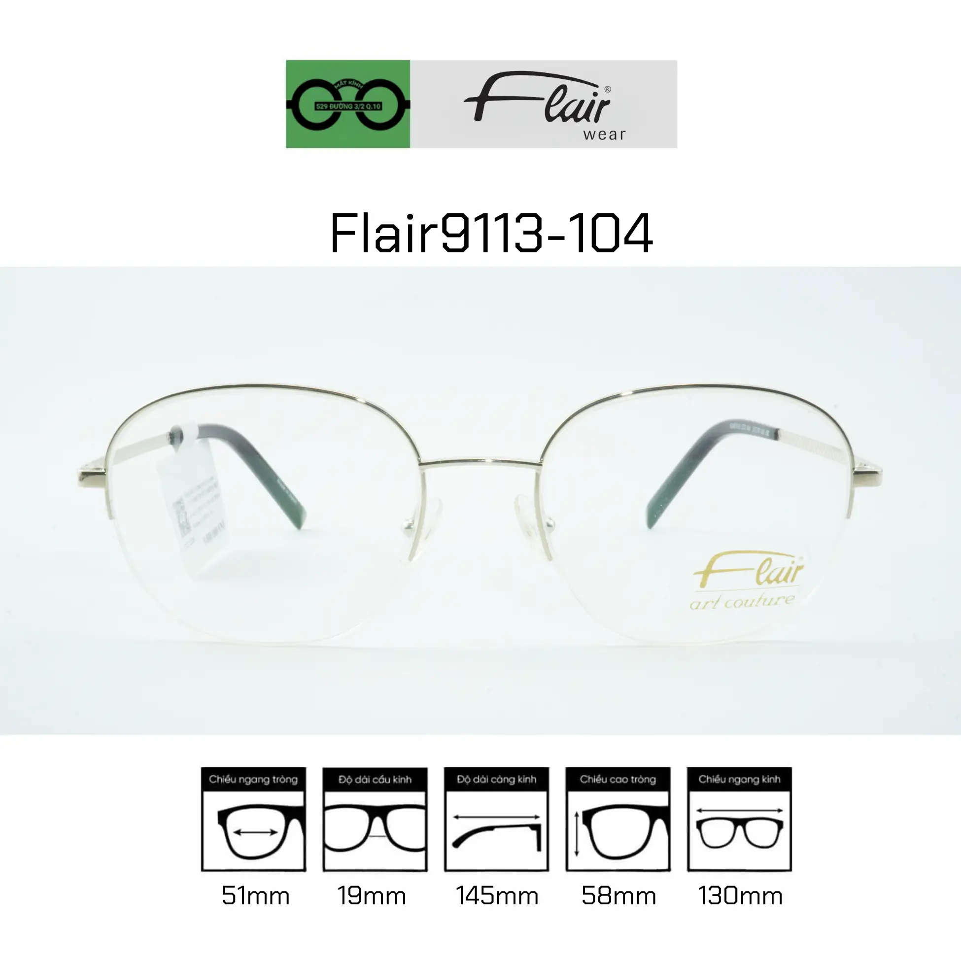 To ensure the glasses fit various face shapes and provide maximum comfort when worn, the *FLAIR 9113_104 Eyeglass Frame* has the following specifications: