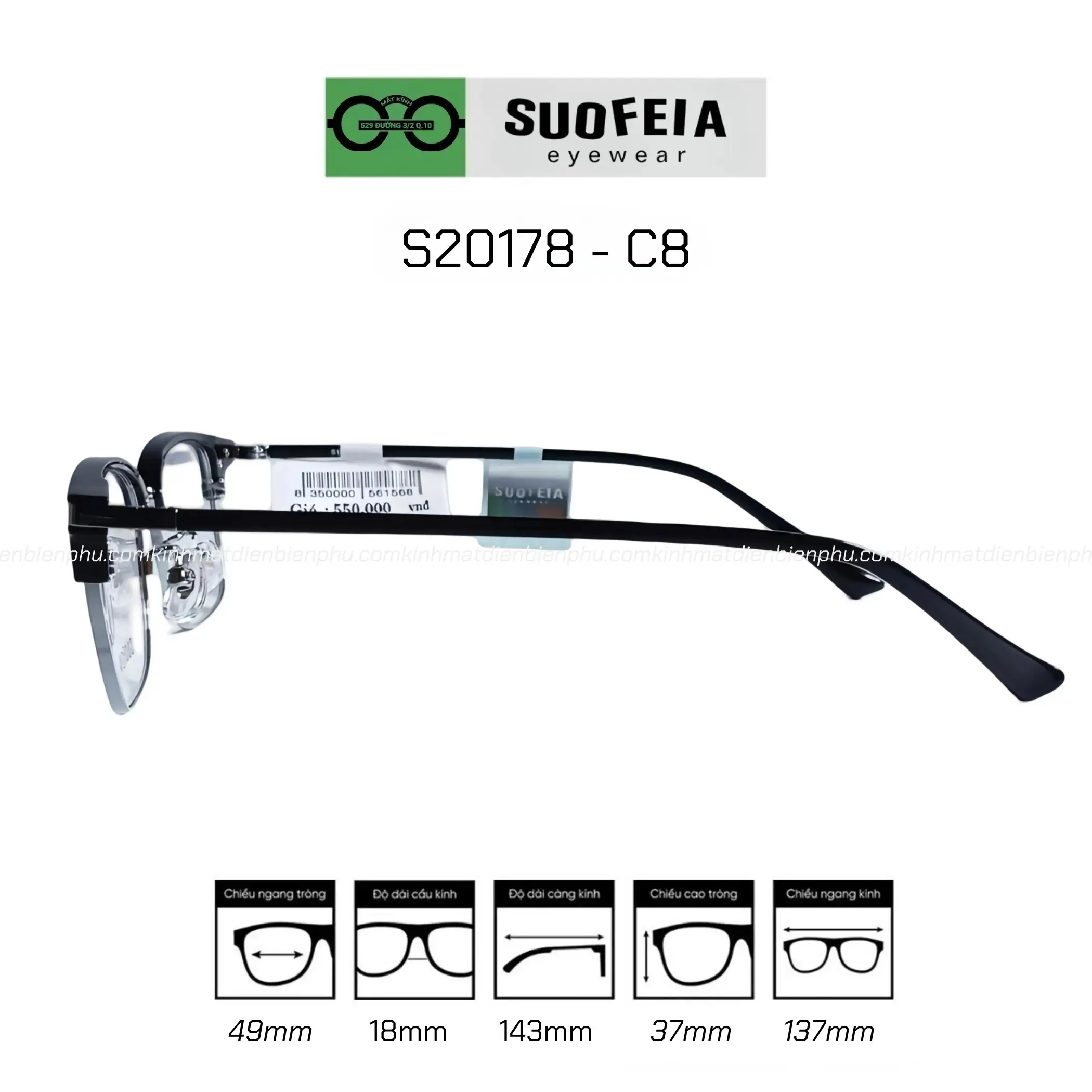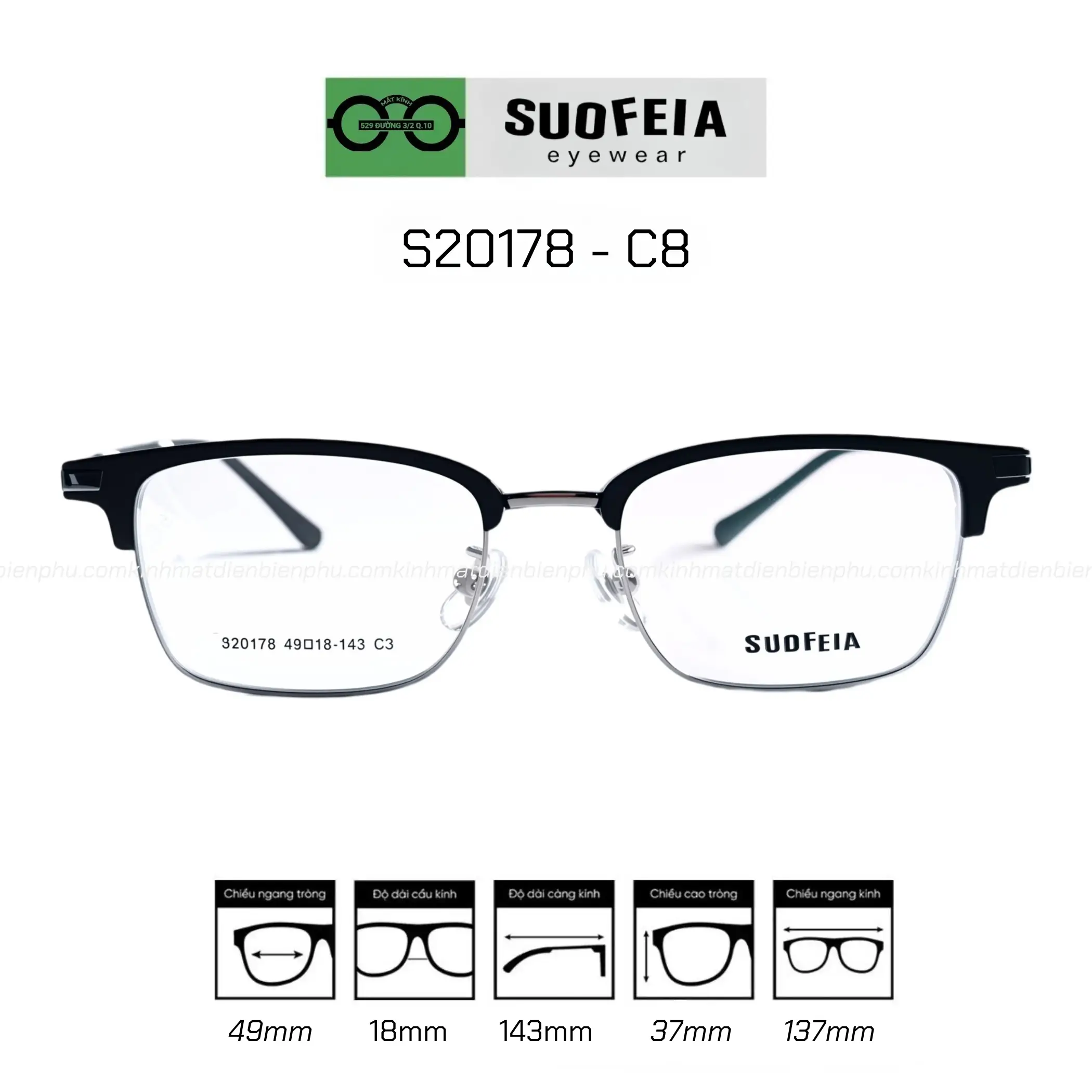 The Suofeia S20178 - C8 frame is specially designed for men who need glasses for myopia, hyperopia, or astigmatism. This product is suitable for those looking for a convenient everyday frame that is still eye-catching and elegant. Particularly, this product helps highlight the modern and sophisticated fashion style of men.