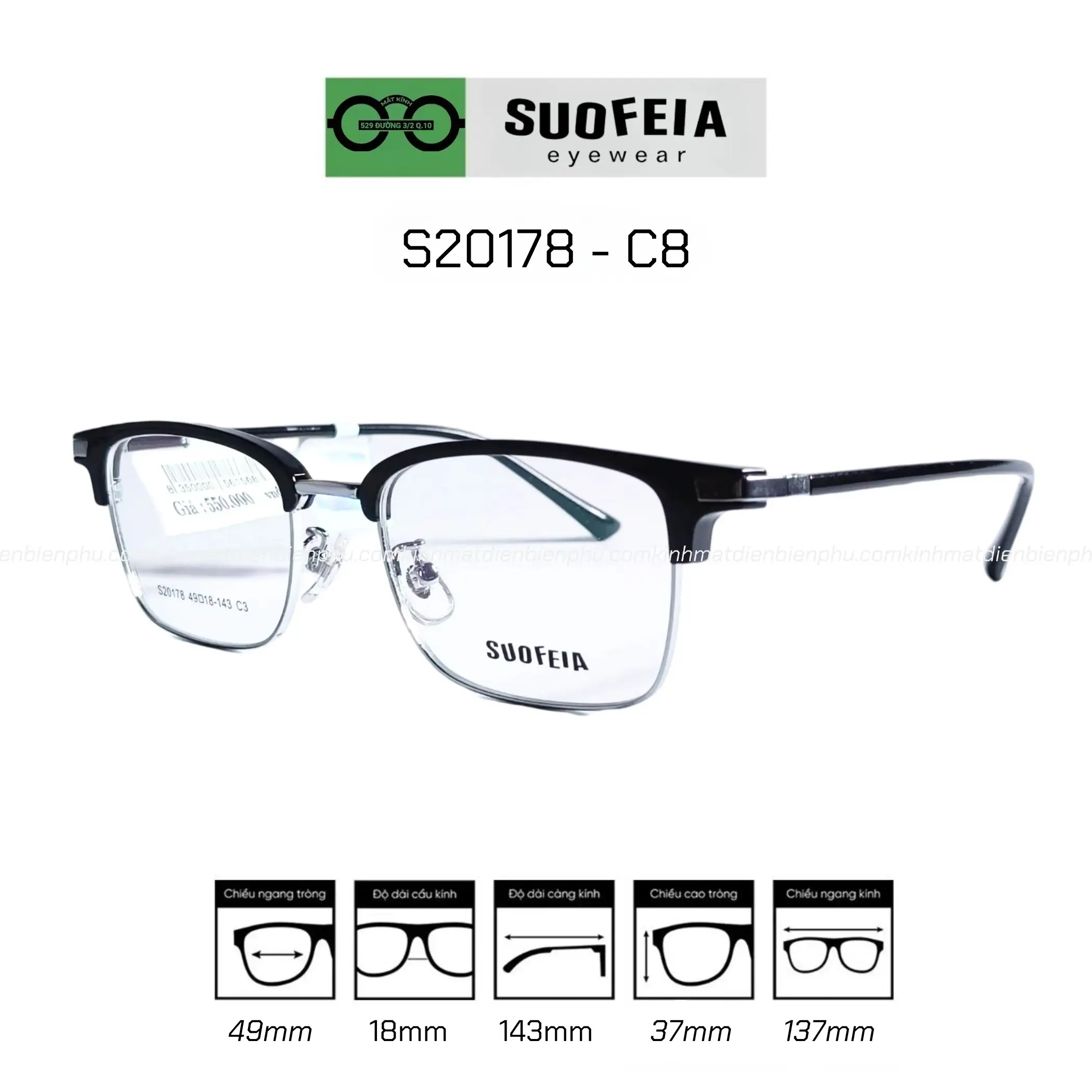 SUOFEIA S20178 - C8 TR90 Plastic and Titanium Frame is an excellent product in the category of Dien Bien Phu Eyewear. With a modern design and high-quality materials, this product offers users convenience and style. Manufactured by the reputable brand Suofeia, this frame not only meets vision needs but also serves as a perfect fashion accessory for men.