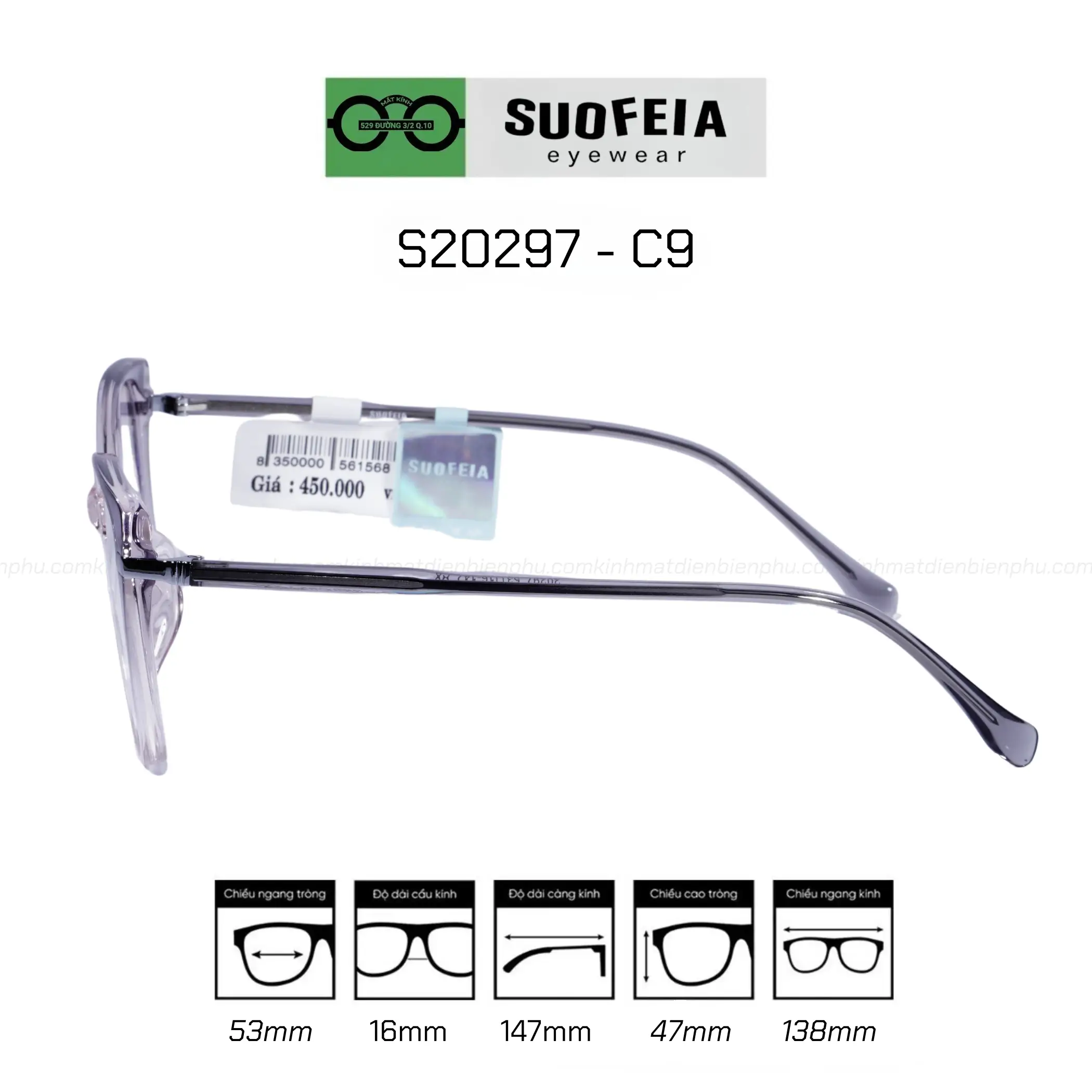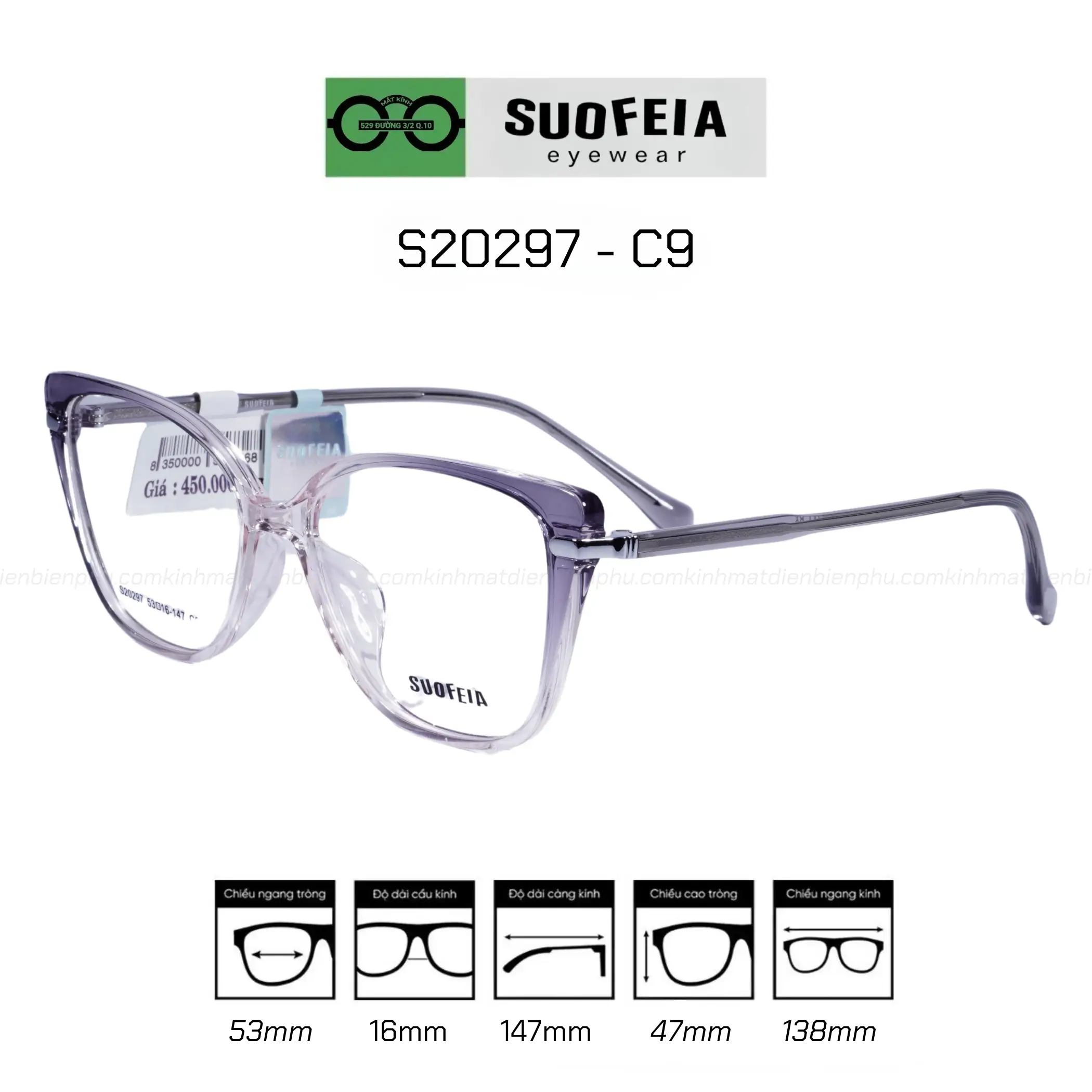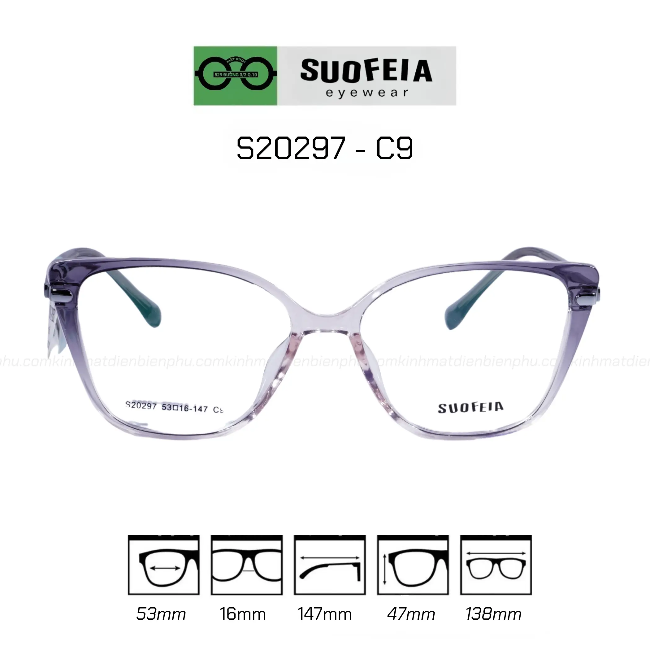 The Suofeia ST20297 - C9 frame is the perfect choice for women who love modern fashion styles but still need to ensure eye protection. Suitable for office workers, students, or anyone needing glasses to correct refractive errors such as myopia, hyperopia, or astigmatism. With standard sizes, this frame fits many different face shapes.