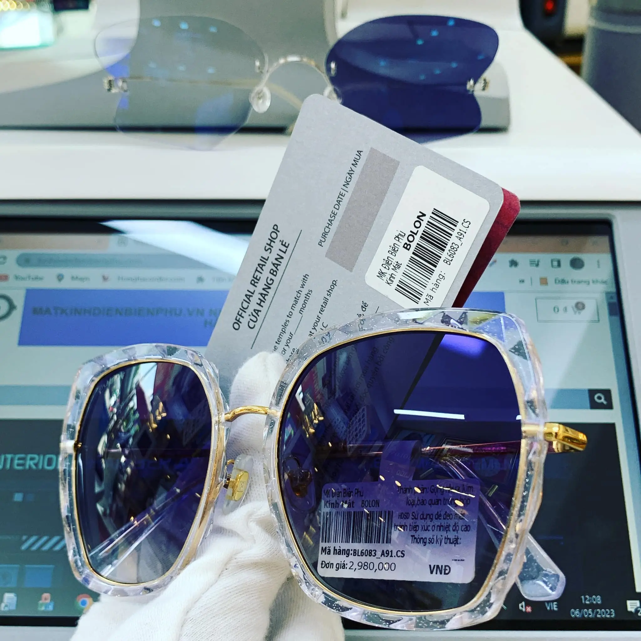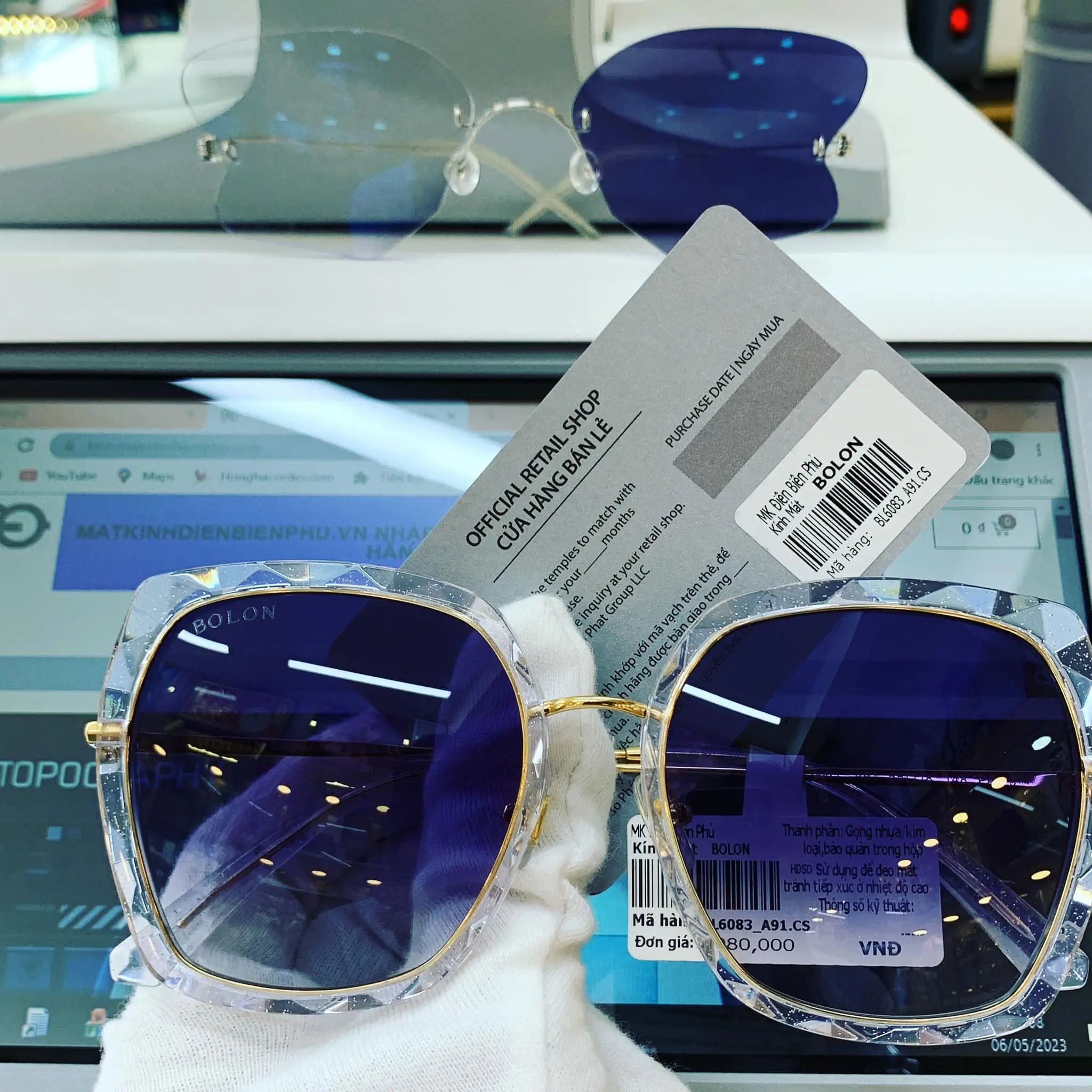 You can check through the laser code engraved on the glasses and the warranty card from the Dien Bien Phu Optical store.