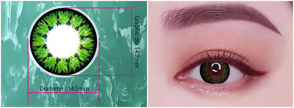 Dưới đây là một số thông số kỹ thuật chi tiết của kính áp tròng **PC Green**: