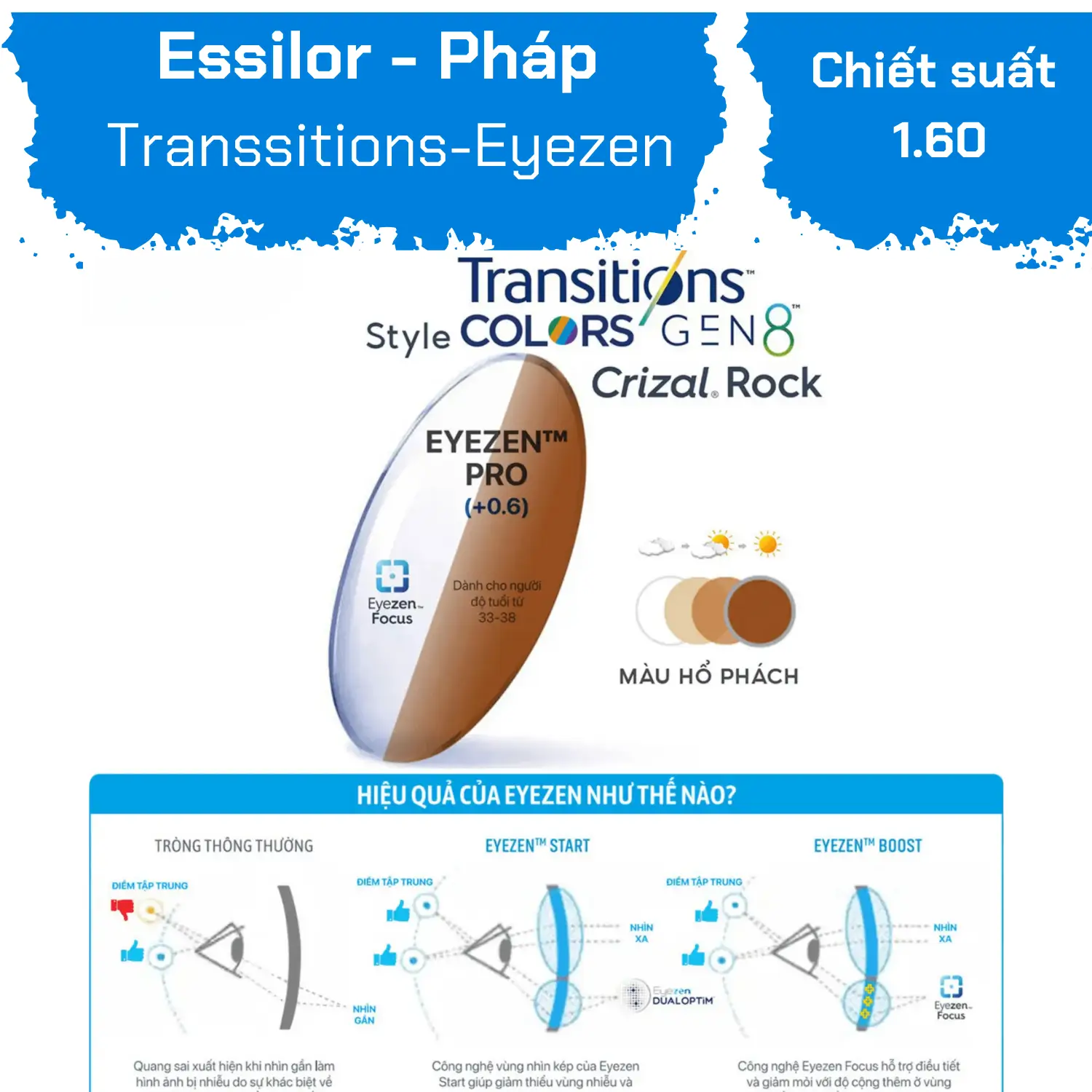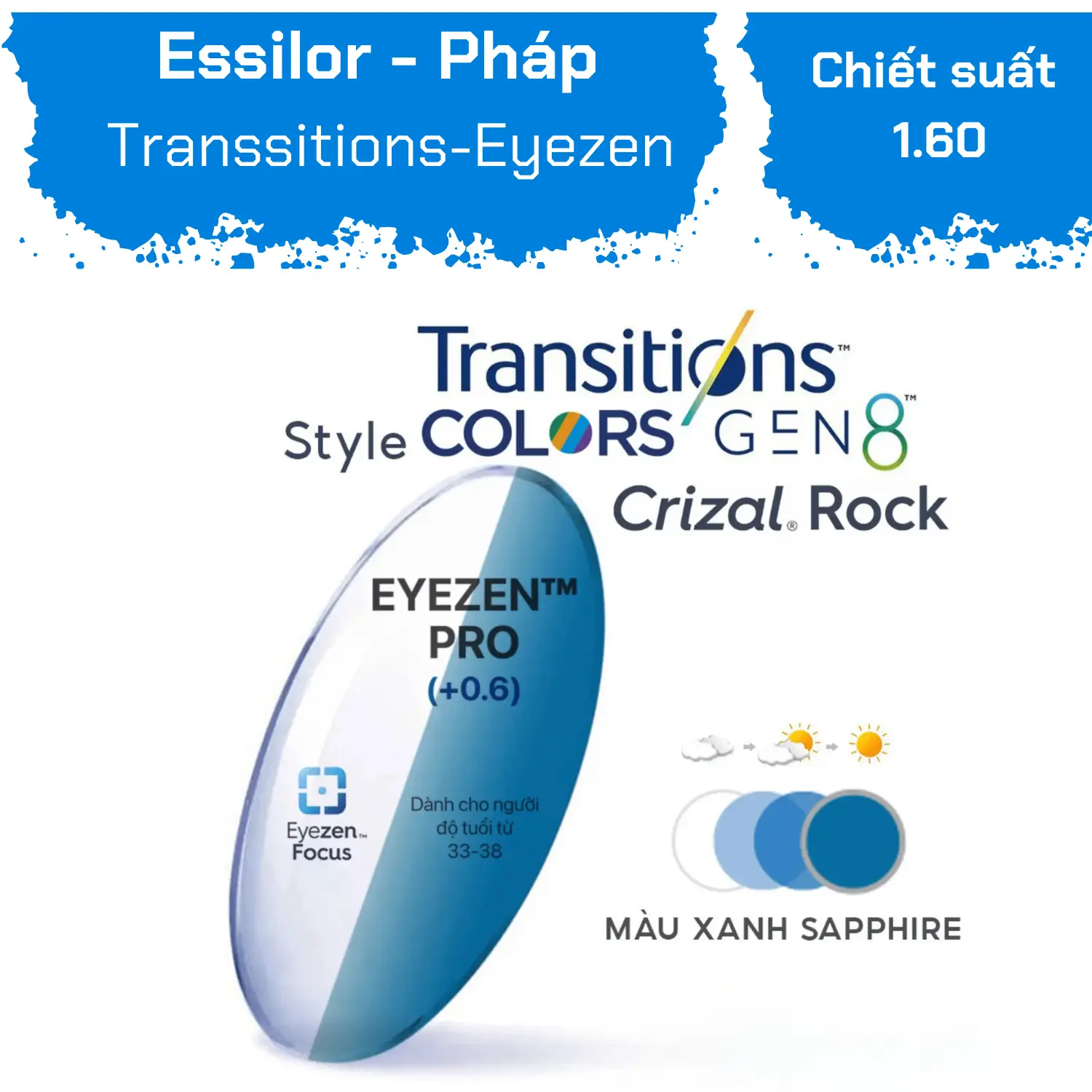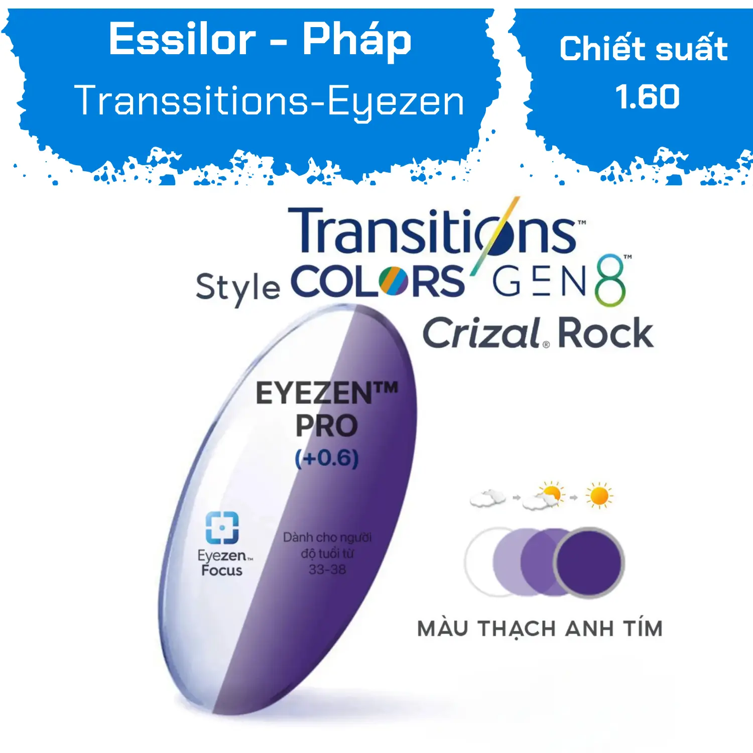 Eye Glass Dien Bien Phu is one of the leading reputable eyewear stores in Ho Chi Minh City, specializing in providing high-quality lenses from famous brands worldwide. One of the standout products in the store is the Eyezen Pro Transitions 8 Crizal Rock 1.60, a perfect combination of advanced technology and elegant design, ensuring a wonderful visual experience for users.