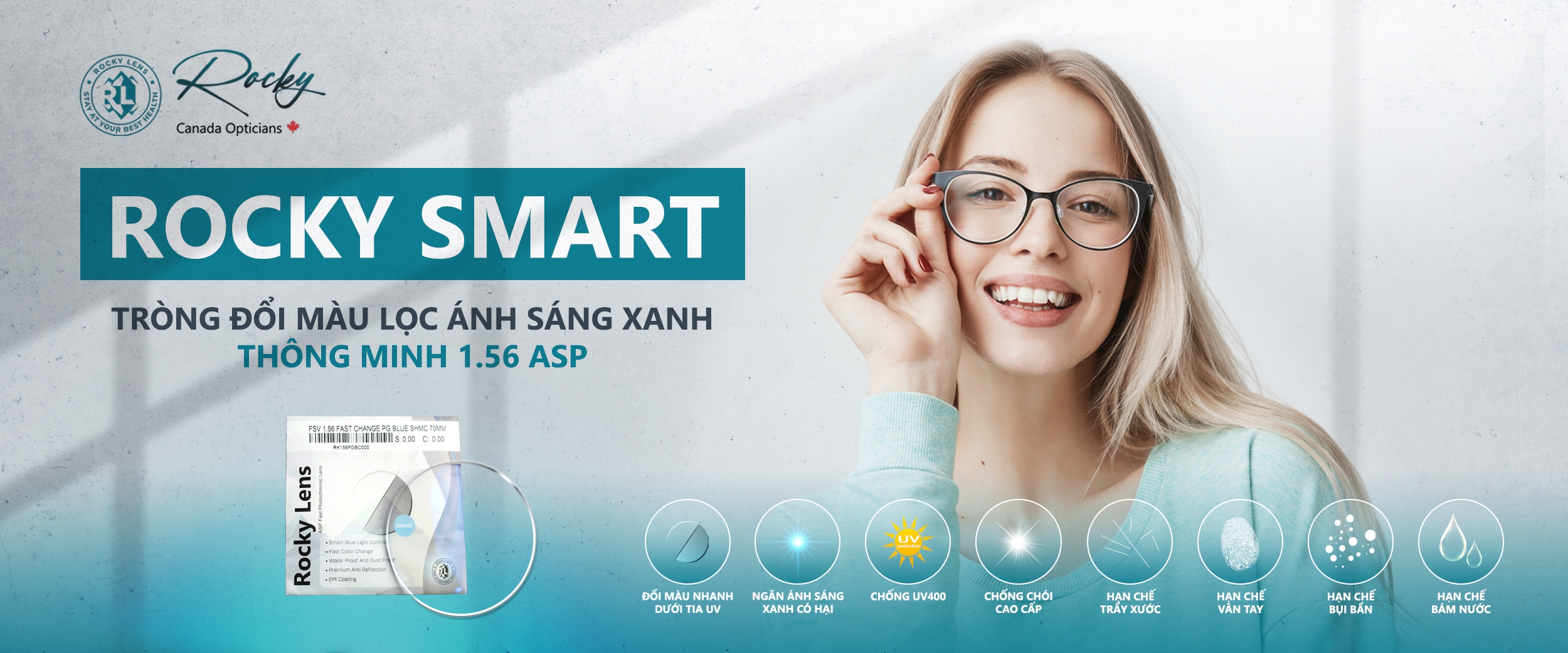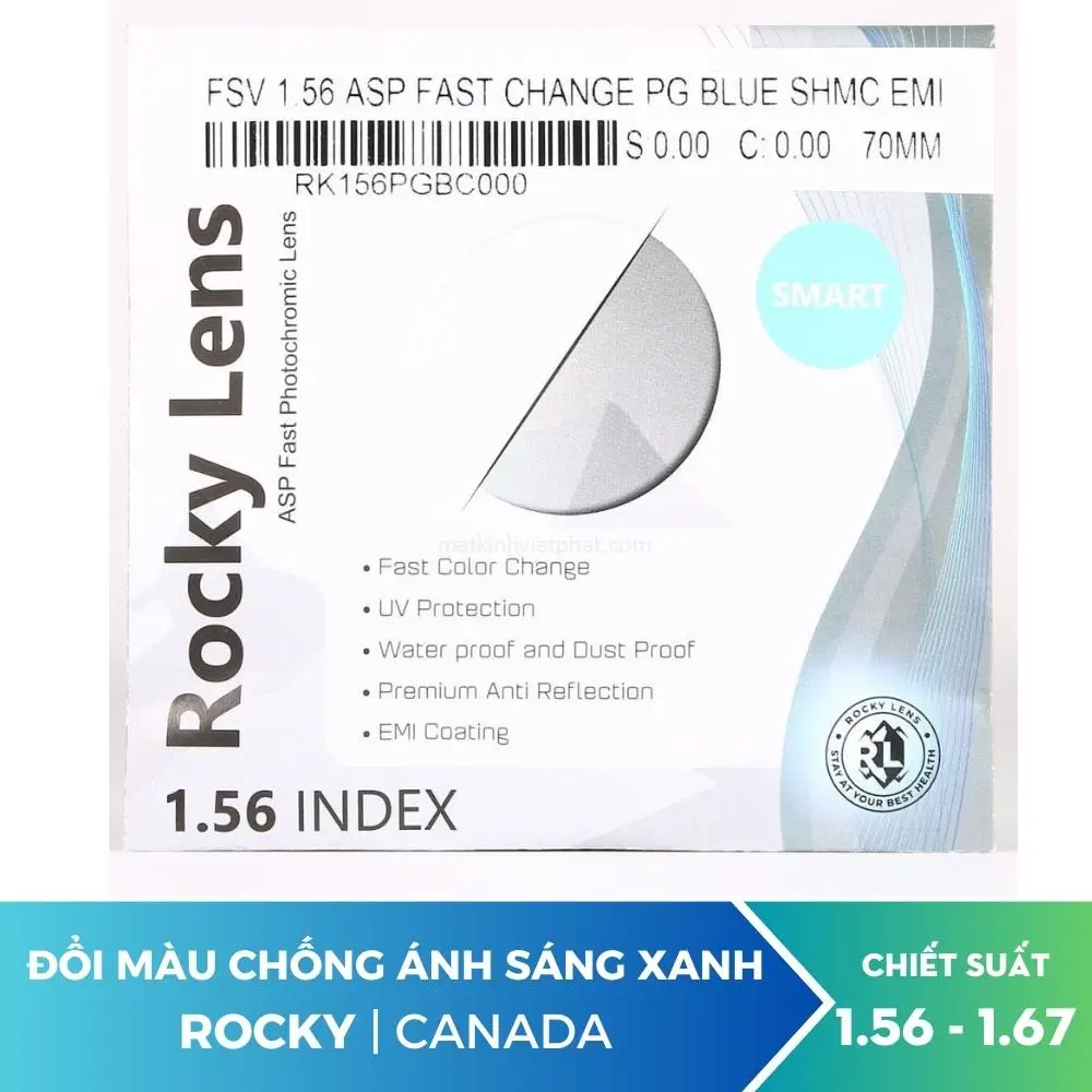 The Rocky Smart 1.56 blue light changing lenses from the Rockylens brand are a standout product with eye protection features and a trendy design. With a refractive index of 1.56, the lenses not only provide a realistic visual experience but also ensure aesthetics and convenience for the user. The product has the ability to change color instantly under UV light, while integrating advanced blue light filtering technology to protect the eyes from harmful environmental factors.
