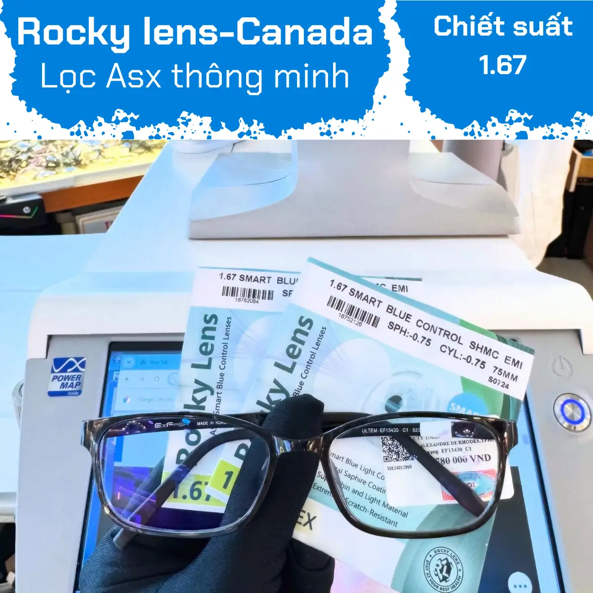 Rocky 1.67 ASP Smart Blue Control Sapphire Crystal Lenses are a premium product from the Rockylens brand, specially designed to meet the needs of users with high myopia or astigmatism. With advanced technology and modern materials, these lenses not only provide maximum comfort but also effectively protect the eyes from harmful environmental impacts and blue light from digital devices. This is the ideal choice for those looking for a pair of glasses that are both lightweight and aesthetically pleasing.