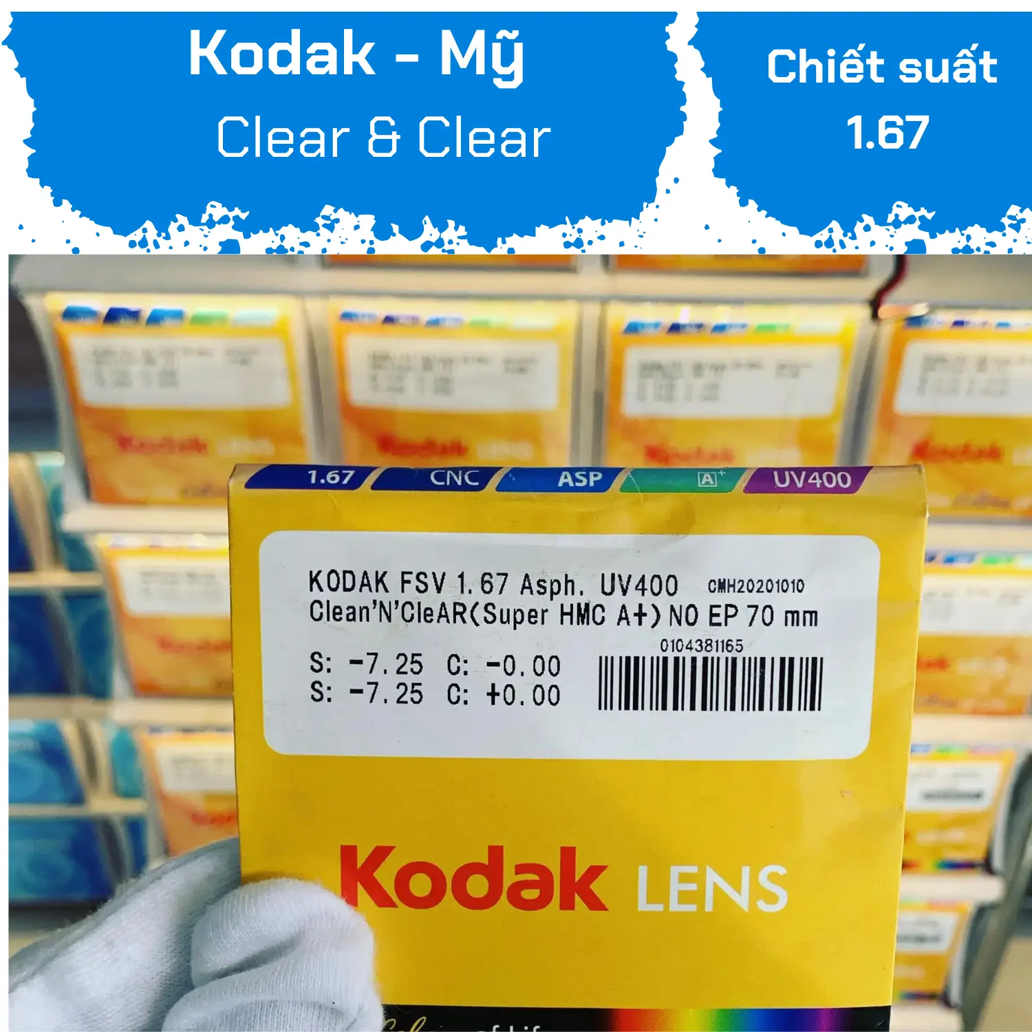 The Kodak UV400 Clean&Clear 1.67 lenses are a standout product in the premium lens line, imported and distributed by Kính Mắt Điện Biên Phủ. Designed to suit all ages and genders, this product is not only an ideal choice for those who appreciate sophistication but also meets the demand for superior optical quality. With its ultra-thin feature, dirt resistance, and optimal eye protection, Kodak lenses are a top priority for many users in Vietnam.
