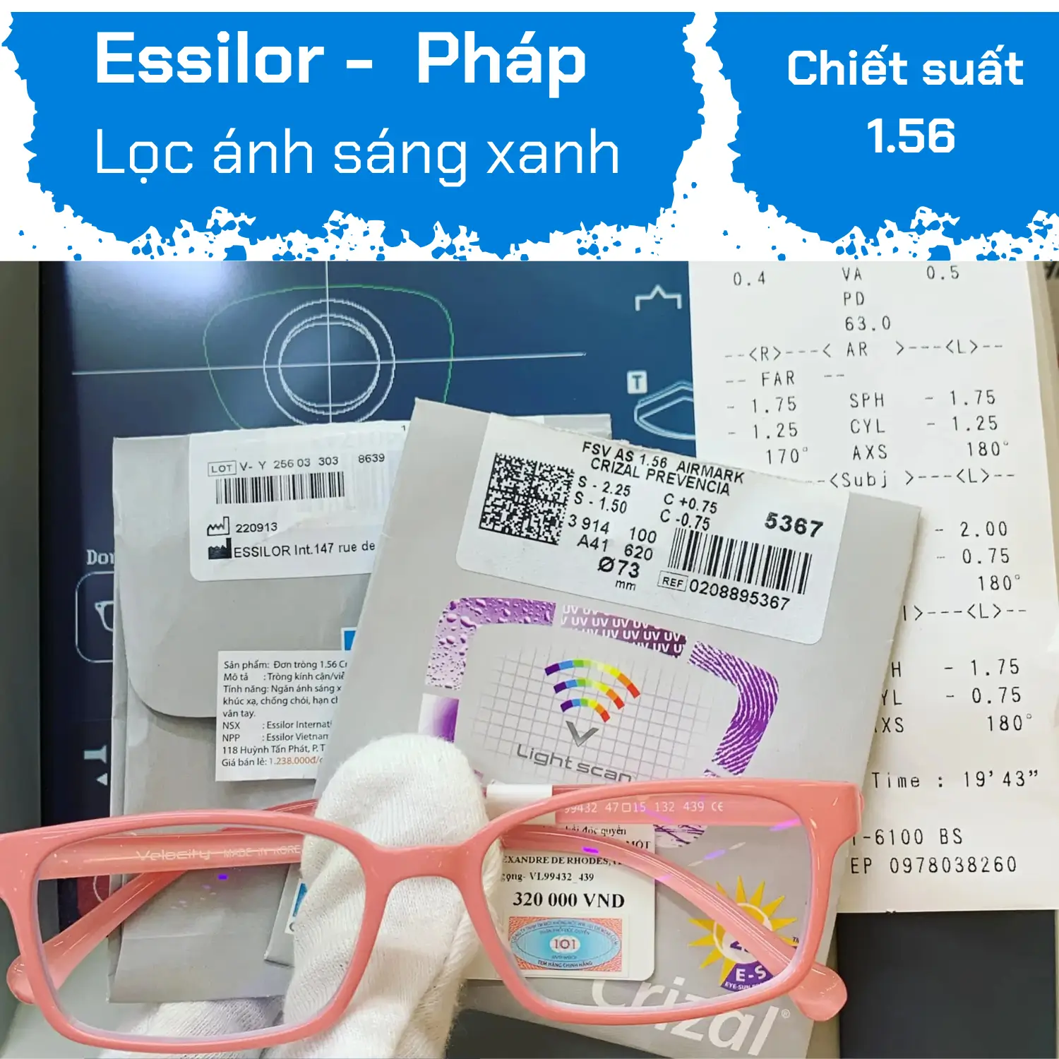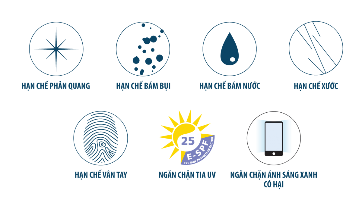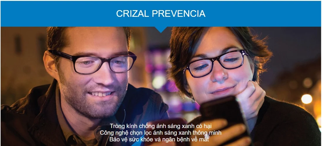 PRODUCT INFORMATION: Brand: Essilor Origin: France Material: Plastic Warranty: 6 MonthsHAZARDOUS BLUE LIGHT: POTENTIAL HIDDEN DANGER Nowadays, our eyes are frequently exposed to harmful blue light emitted from both electronic devices and the natural environment. At the same time, we are also regularly subjected to UV (Ultra Violet) rays when outdoors. Long-term exposure to these two types of light can cause irreversible damage to your eyes. However, we need to distinguish between beneficial blue light and harmful blue light. Beneficial turquoise blue light helps you perceive shapes, details, and colors of objects and is necessary for regulating the human biological clock. Harmful blue violet light poses a risk of retinal damage and is a cause of age-related macular degeneration. CRIZAL PREVENCIA SOLUTION: LIGHT SCAN TECHNOLOGY Essilor introduces the smart blue light filtering technology Light ScanTM of Crizal Prevencia, which prevents harmful blue violet light while allowing beneficial turquoise blue light to pass through, ensuring optimal health for you. Conventional blue light blocking technology on the market cuts both types of blue light without distinction, inadvertently affecting health, so you need to pay attention to this issue. The lenses have a high light transmission rate of up to 99%, ensuring clarity, sharpness, and true color representation. On the lens surface, when harmful blue light shines, you will see purple reflections indicating that the blue light blocking function is working. This is a distinctive feature of the premium Crizal Prevencia lenses, which ordinary blue light blocking lenses do not have. The lenses also have scratch resistance, anti-reflective (glare), fingerprint resistance, water resistance, dirt resistance, and 100% UV protection, along with a full range of prescription options for all refractive errors - making Crizal Prevencia the optimal and perfect choice for all ages, professions, and activities. CRIZAL PREVENCIA: COMPREHENSIVE PROTECTION FOR YOUR EYES The lenses also have scratch resistance, anti-glare, fingerprint resistance, water resistance, dirt resistance, and 100% UV protection, along with a full range of prescription options for all refractive errors - making Crizal Prevencia the optimal and perfect choice for all ages, professions, and activities. OUTSTANDING TECHNOLOGY THAT CREATES THE PREVENCIA LENS WITH 7 PERFECT COATINGS In addition to the LightScan technology that filters harmful blue violet light, Prevencia lenses have coatings: Anti-glare/anti-reflective, scratch-resistant, dirt-resistant, water-resistant, fingerprint-resistant, and dual-side UV protection. NOTE: - Each pair of glasses comes with a 6-month warranty card for oil coating defects due to technical errors and a complimentary Crizal cloth. - Each lens has the hidden