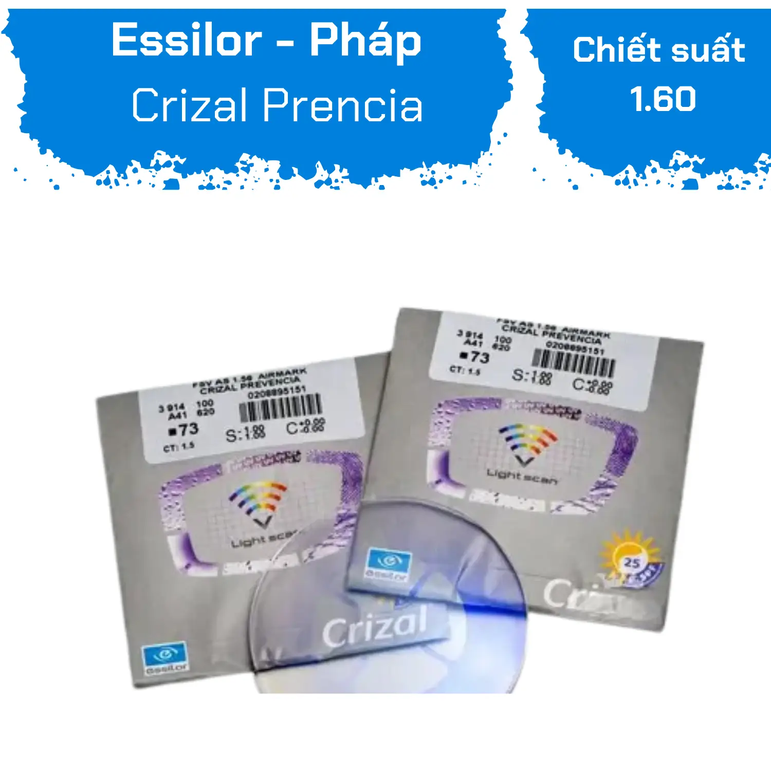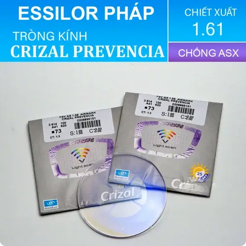 PRODUCT INFORMATION: Brand: Essilor Origin: France Material: Plastic Warranty: 6 MonthsHARMFUL BLUE LIGHT: HIDDEN DANGER Nowadays, our eyes are frequently exposed to harmful blue light emitted from both electronic devices and the natural environment. At the same time, we are also often subjected to UV (Ultra Violet) rays when outdoors. Long-term exposure to these two types of light can cause irreversible damage to your eyes. However, we need to distinguish between beneficial blue light and harmful blue light. Beneficial turquoise blue light helps you perceive shapes, details, and colors of objects and is necessary for regulating the human biological clock. Harmful blue violet light poses a risk of retinal damage and is a cause of age-related macular degeneration. CRIZAL PREVENCIA'S SOLUTION: LIGHT SCAN TECHNOLOGY Essilor introduces the intelligent blue light filtering technology Light ScanTM of Crizal Prevencia, which blocks harmful blue violet light while allowing beneficial turquoise blue light to pass through, ensuring optimal health for you. Conventional blue light blocking technology on the market cuts both types of blue light without distinction, inadvertently affecting health, so you need to pay attention to this issue. The lenses have a high light transmission rate of up to 99%, ensuring clarity, sharpness, and true-to-life images. On the lens surface, when harmful blue light shines, you will see purple reflections indicating that the blue light blocking function is working. This is a recognizable feature of high-end Crizal Prevencia lenses, which ordinary blue light blocking lenses do not have. The lenses also have scratch resistance, anti-reflective (glare), fingerprint resistance, water resistance, dust resistance, and 100% UV protection, along with a full range of prescription options for all refractive errors - making Crizal Prevencia the optimal and perfect choice for all ages, professions, and activities. CRIZAL PREVENCIA: COMPREHENSIVE PROTECTION FOR YOUR EYES The lenses also have scratch resistance, anti-glare, fingerprint resistance, water resistance, dust resistance, and 100% UV protection, along with a full range of prescription options for all refractive errors - making Crizal Prevencia the optimal and perfect choice for all ages, professions, and activities. OUTSTANDING TECHNOLOGY CREATING PREVENCIA LENSES WITH 7 PERFECT COATINGS In addition to the LightScan technology that filters harmful blue violet light, Prevencia lenses have coatings: Anti-glare/anti-reflective, scratch-resistant, dust-resistant, water-resistant, fingerprint-resistant, and dual-side UV protection. NOTE: - Each pair of glasses comes with a 6-month warranty card for oil film defects due to technical faults and a complimentary Crizal cloth. - Each lens has the hidden