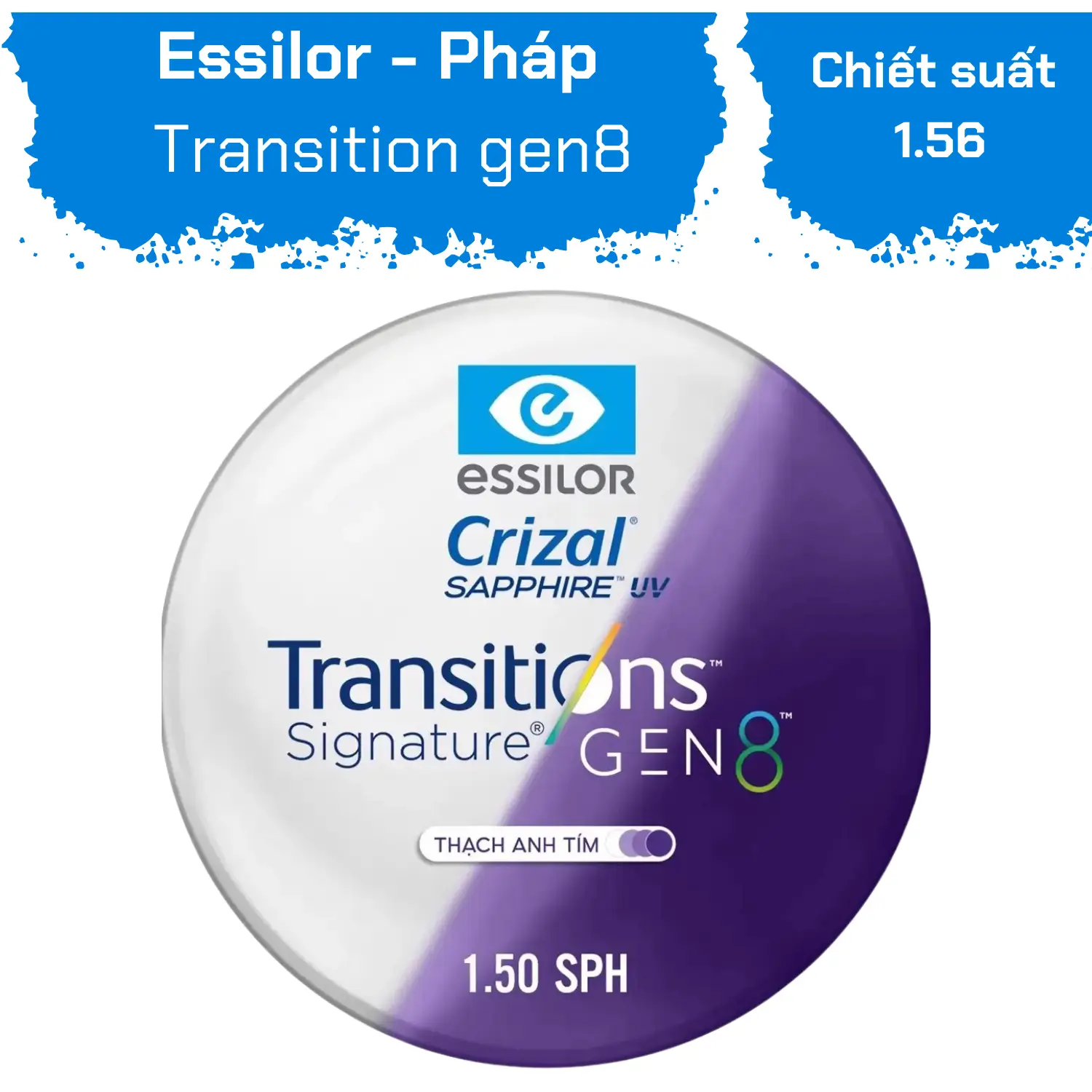 The Transitions 8 Sapphire HR 1.50 Purple Essilor lenses are a top product from the renowned brand Essilor, offering a perfect solution for those seeking convenience and comprehensive protection for their eyes. With advanced technology, this product not only meets visual needs but also cleverly integrates fashion features and optimal eye protection. Dien Bien Phu Eyewear proudly serves as an official distributor, committed to providing customers with quality products and the best service.