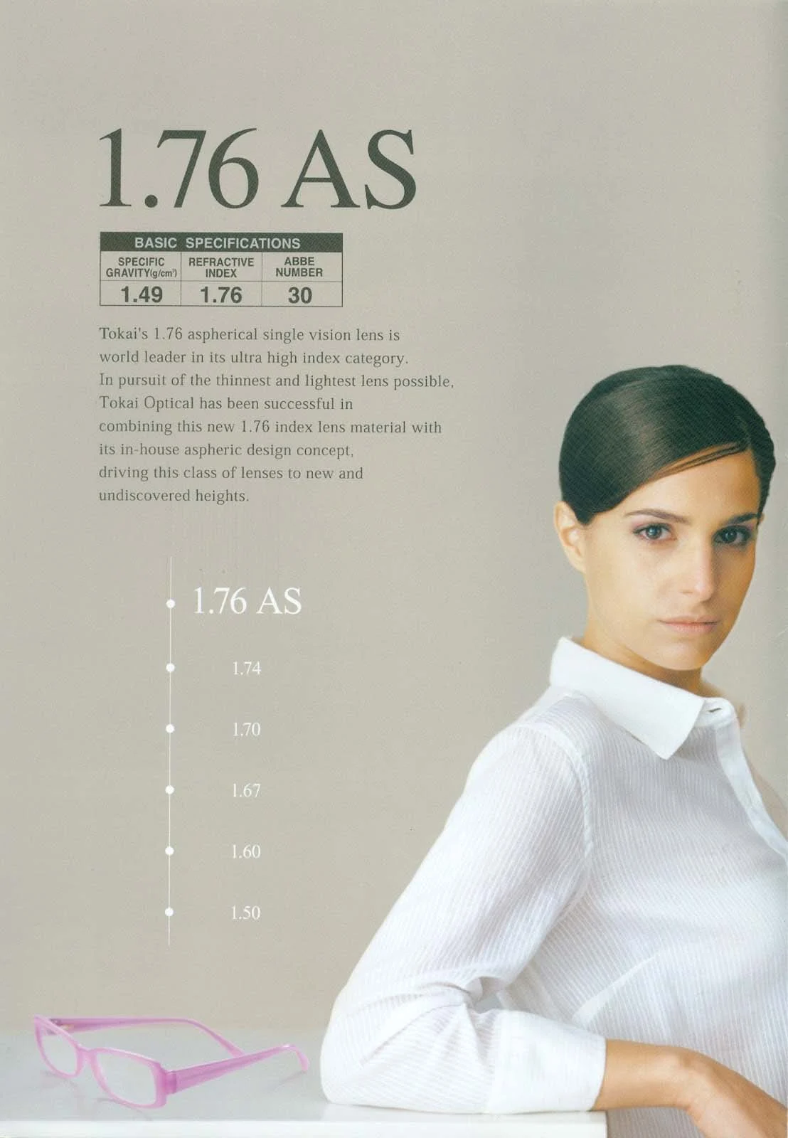 1. Index 1.76 - Tròng kính mỏng nhất thế giới Để theo đuổi thấu kính mỏng nhất và nhẹ nhất có thể, Tokai